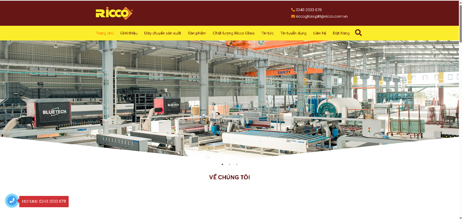 Giới thiệu website RICCO GLASSWebsite riccoglass.com.vn được xây dựng hoàn toàn bằng code theo kiến trúc hiện đại, tập trung vào hiệu suất, bảo mật và khả năng mở rộng dài hạn. Toàn bộ cấu trúc website được thiết kế có chủ đích để phản ánh đúng quy mô nhà máy, năng lực công nghệ và vị thế kỹ thuật cao của RICCO GLASS trong ngành kính an toàn và kính tiết kiệm năng lượng.Website không sử dụng các mẫu dựng sẵn, mà được phát triển với tư duy hệ thống, tối ưu tốc độ tải, chuẩn SEO kỹ thuật và khả năng tích hợp dữ liệu trong tương lai, phù hợp với doanh nghiệp sản xuất quy mô lớn, định hướng B2B và thị trường quốc tế.